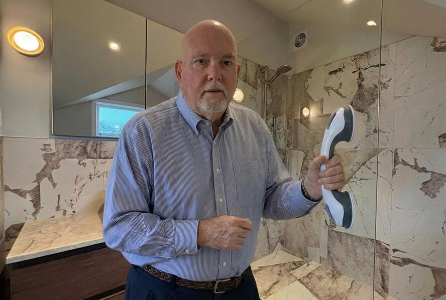 It happened two weeks after my mom's hip surgery.She was staying with us while she recovered. We thought we'd covered everything — grippy socks, a cane by the bed, clear floors, nightlights in the hallway.Then one morning I heard the sound.A loud thump from the bathroom.I ran in and found her frozen mid-step, arms stretched out, one hand pressed against the wall, the other gripping the edge of the counter. Her foot was halfway out of the shower.She hadn't fallen. But she was one inch away from it."Frank, don't move me. I'm scared if I move I'll go down."She stood like that — braced against the wall — until I could get to her and guide her out.My mom is 78. She's sharp. She's independent. She walked three miles a day before the surgery.But in that moment, in a wet bathroom with nothing solid to hold onto, she looked terrified.And so was I.Because I knew the statistics. Every 19 minutes, an older adult dies from a fall. Over 3 million seniors are treated in the ER for falls every year. And the bathroom — with its smooth tile, condensation, and hard surfaces — is the most dangerous room in the house.I kept thinking: what if I hadn't been home? What if she'd actually gone down?A broken hip at 78 isn't just a hospital stay. It's the beginning of the end for a lot of people. I wasn't going to let that happen to my mom.